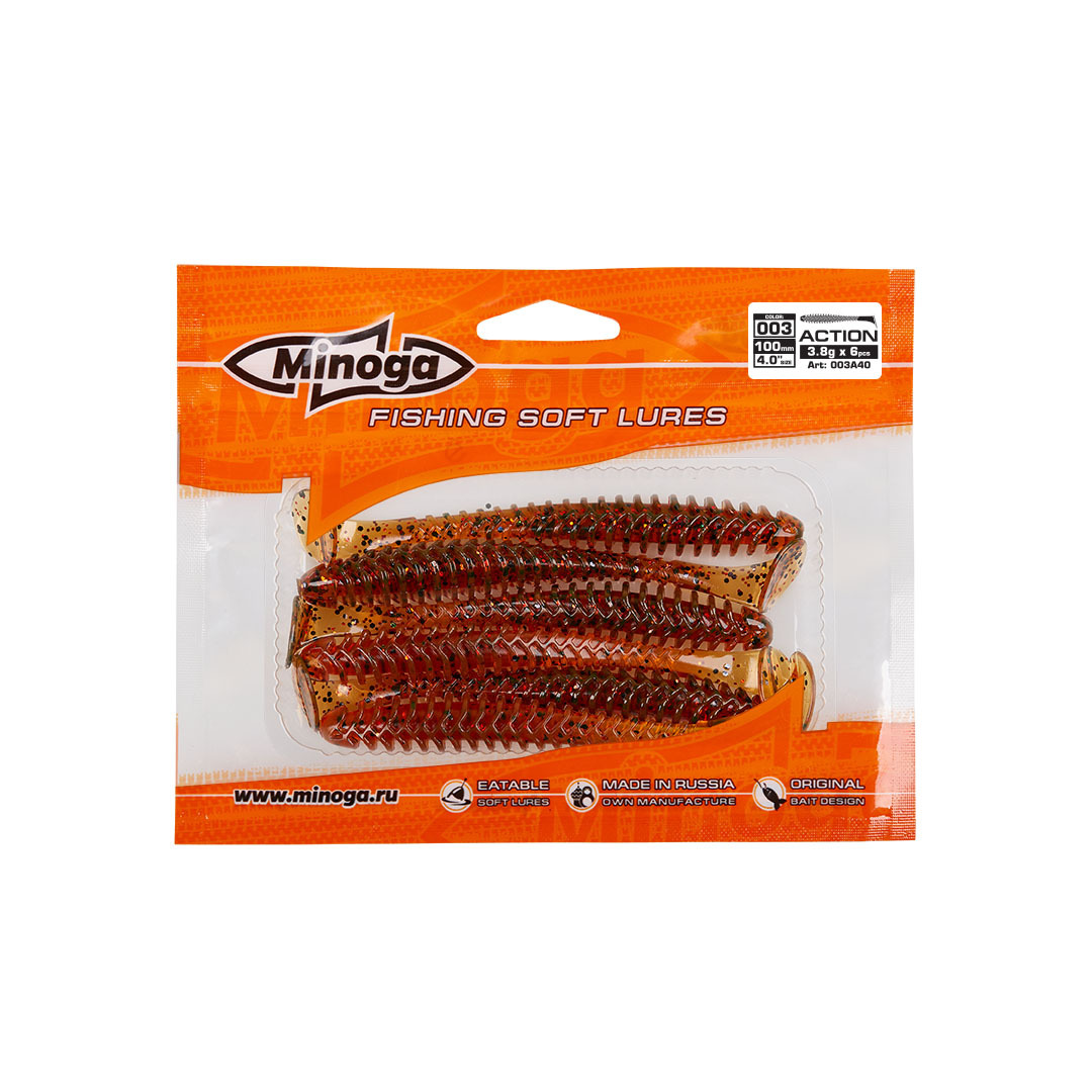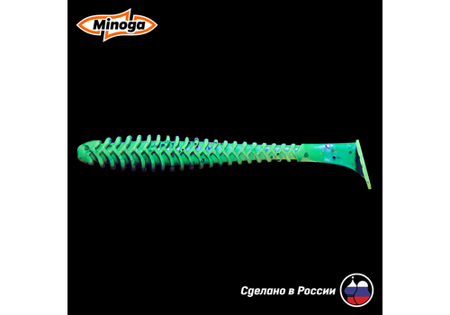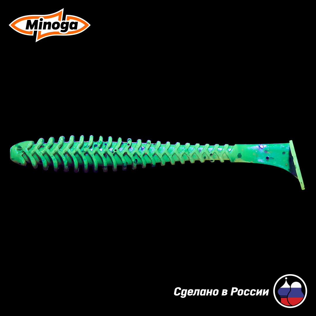 Виброхвост Minoga ACTION имеет удлиненное ребристое тело, которое создает шумы в водной среде, заставляя тем самым, обратить на себя внимание любому, даже самого пассивному хищнику. Приманка работает даже при самой медленной проводке! Action делается, как и все приманки MINOGA из мягкого съедобного силикона, с содержанием как вкусовой, так и ароматической добавки. Основным объектом ловли на данную приманку является окунь, судак и щука.  Эту приманку можно использовать на всех типах джиговых монтажей такие как: Джиг-головка, Шарнирный монтаж с разборной чебурашкой, Поводковые оснастки, Джиг-риг, Дроп-шот итд.