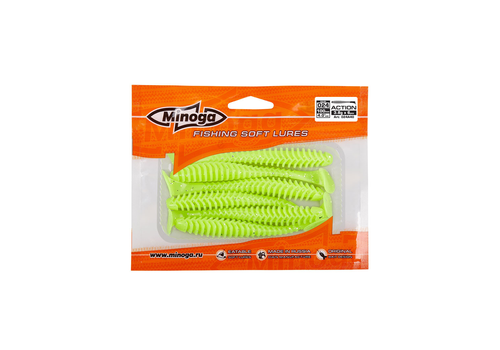Виброхвост Minoga ACTION имеет удлиненное ребристое тело, которое создает шумы в водной среде, заставляя тем самым, обратить на себя внимание любому, даже самого пассивному хищнику. Приманка работает даже при самой медленной проводке! Action делается, как и все приманки MINOGA из мягкого съедобного силикона, с содержанием как вкусовой, так и ароматической добавки. Основным объектом ловли на данную приманку является окунь, судак и щука.  Эту приманку можно использовать на всех типах джиговых монтажей такие как: Джиг-головка, Шарнирный монтаж с разборной чебурашкой, Поводковые оснастки, Джиг-риг, Дроп-шот итд.