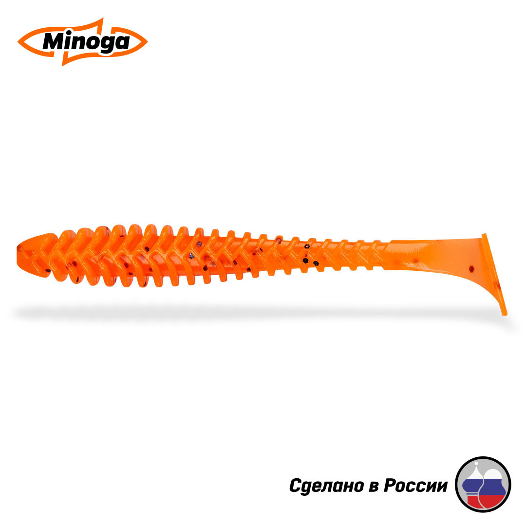 Виброхвост Minoga ACTION имеет удлиненное, утолщенное ребристое тело, которое создает сильный шум и вибрацию в водной среде, заставляя тем самым, обратить на себя внимание любого, даже самого пассивного хищника. Приманка работает даже при самой медленной проводке! Action FAT делается, как и все приманки MINOGA из мягкого съедобного силикона, с содержанием как вкусовой, так и ароматической добавки. Основным объектом ловли на данную приманку является крупный судак и щука. Эту приманку можно использовать как для классических джиговых монтажей, так и для пелагических и неогруженных.