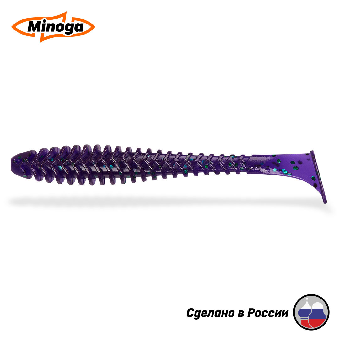 Виброхвост Minoga ACTION имеет удлиненное, утолщенное ребристое тело, которое создает сильный шум и вибрацию в водной среде, заставляя тем самым, обратить на себя внимание любого, даже самого пассивного хищника. Приманка работает даже при самой медленной проводке! Action FAT делается, как и все приманки MINOGA из мягкого съедобного силикона, с содержанием как вкусовой, так и ароматической добавки. Основным объектом ловли на данную приманку является крупный судак и щука. Эту приманку можно использовать как для классических джиговых монтажей, так и для пелагических и неогруженных.