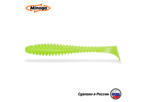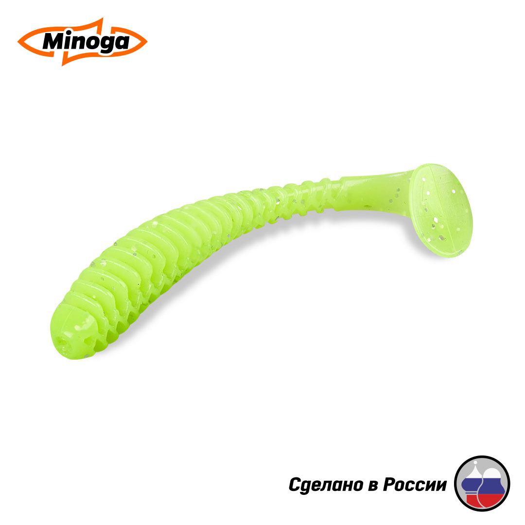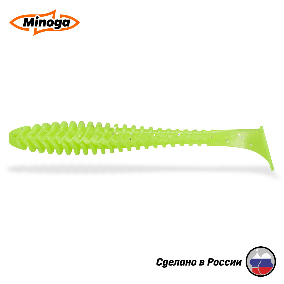 Виброхвост Minoga ACTION имеет удлиненное, утолщенное ребристое тело, которое создает сильный шум и вибрацию в водной среде, заставляя тем самым, обратить на себя внимание любого, даже самого пассивного хищника. Приманка работает даже при самой медленной проводке! Action FAT делается, как и все приманки MINOGA из мягкого съедобного силикона, с содержанием как вкусовой, так и ароматической добавки. Основным объектом ловли на данную приманку является крупный судак и щука. Эту приманку можно использовать как для классических джиговых монтажей, так и для пелагических и неогруженных.