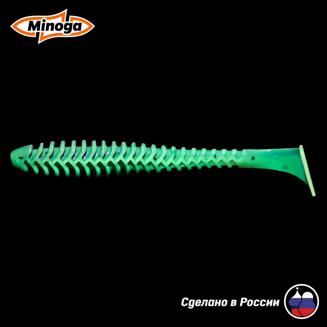 Виброхвост Minoga ACTION имеет удлиненное, утолщенное ребристое тело, которое создает сильный шум и вибрацию в водной среде, заставляя тем самым, обратить на себя внимание любого, даже самого пассивного хищника. Приманка работает даже при самой медленной проводке! Action FAT делается, как и все приманки MINOGA из мягкого съедобного силикона, с содержанием как вкусовой, так и ароматической добавки. Основным объектом ловли на данную приманку является крупный судак и щука. Эту приманку можно использовать как для классических джиговых монтажей, так и для пелагических и неогруженных.