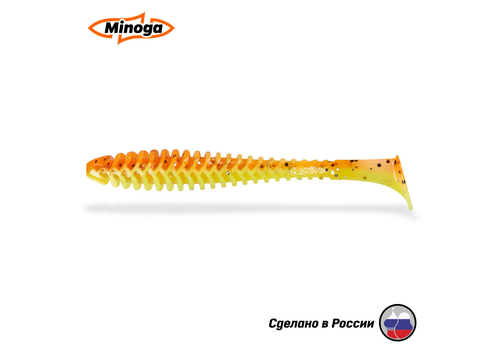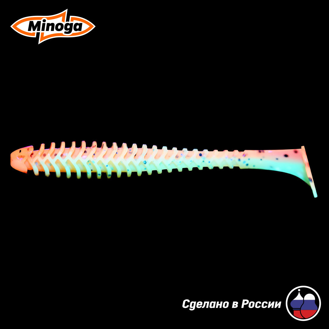Виброхвост Minoga ACTION имеет удлиненное, утолщенное ребристое тело, которое создает сильный шум и вибрацию в водной среде, заставляя тем самым, обратить на себя внимание любого, даже самого пассивного хищника. Приманка работает даже при самой медленной проводке! Action FAT делается, как и все приманки MINOGA из мягкого съедобного силикона, с содержанием как вкусовой, так и ароматической добавки. Основным объектом ловли на данную приманку является крупный судак и щука. Эту приманку можно использовать как для классических джиговых монтажей, так и для пелагических и неогруженных.