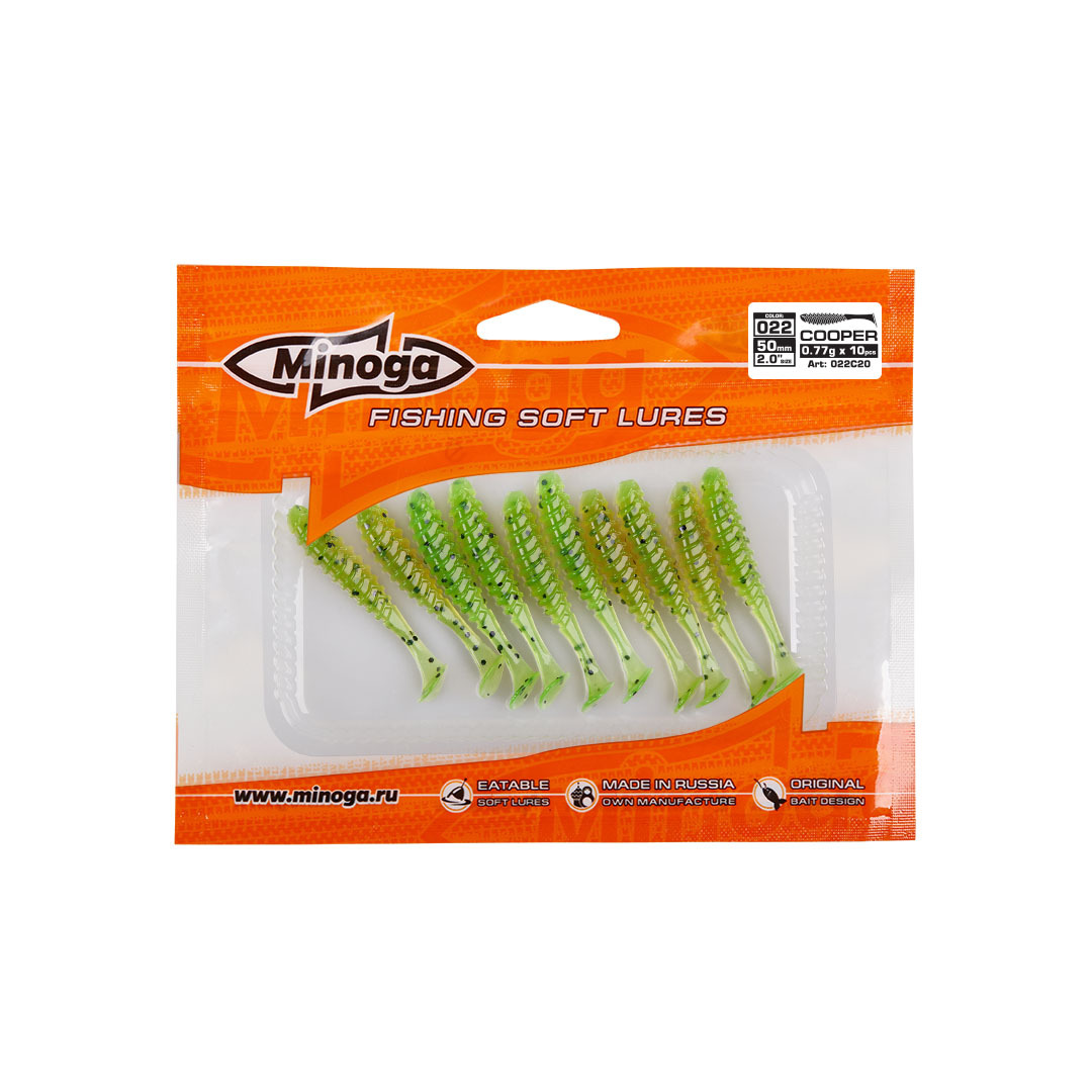 Виброхвост Minoga COOPER имеет удлиненное ребристое треугольное тело, которое создает шумы в водной среде, заставляя тем самым, обратить на себя внимание любому, даже самого пассивному хищнику. Отлично монтируется на офсетный, двойной или одинарный крючок. Приманка работает даже при самой медленной проводке! Cooper делается, как и все приманки MINOGA из мягкого съедобного силикона, с содержанием как вкусовой, так и ароматической добавки. Основным объектом ловли на данную приманку является окунь, судак и щука.