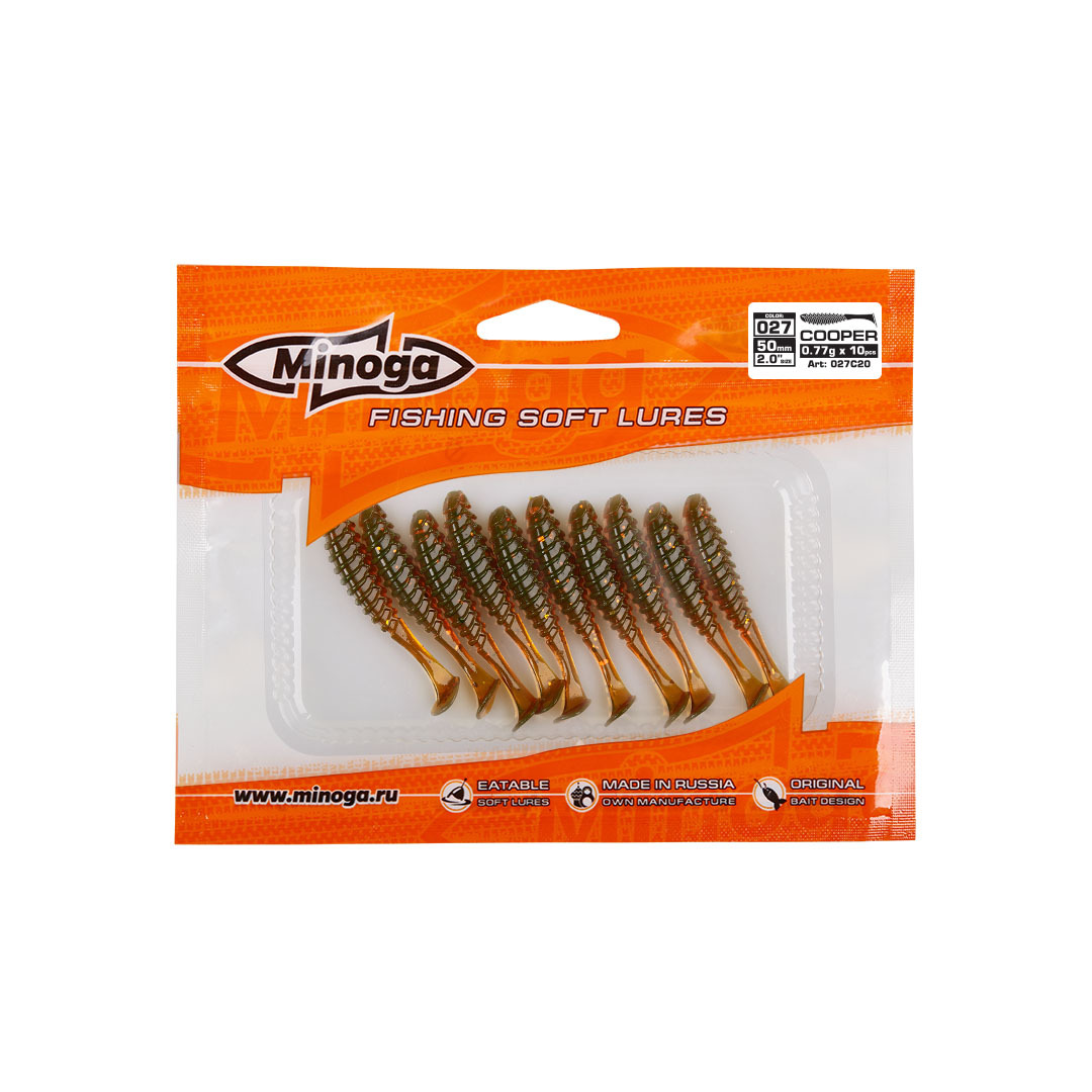 Виброхвост Minoga COOPER имеет удлиненное ребристое треугольное тело, которое создает шумы в водной среде, заставляя тем самым, обратить на себя внимание любому, даже самого пассивному хищнику. Отлично монтируется на офсетный, двойной или одинарный крючок. Приманка работает даже при самой медленной проводке! Cooper делается, как и все приманки MINOGA из мягкого съедобного силикона, с содержанием как вкусовой, так и ароматической добавки. Основным объектом ловли на данную приманку является окунь, судак и щука.