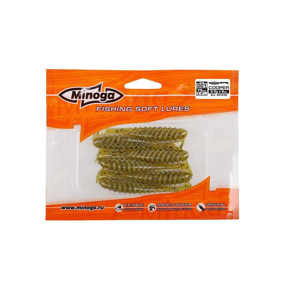 Виброхвост Minoga COOPER имеет удлиненное ребристое треугольное тело, которое создает шумы в водной среде, заставляя тем самым, обратить на себя внимание любому, даже самого пассивному хищнику. Отлично монтируется на офсетный, двойной или одинарный крючок. Приманка работает даже при самой медленной проводке! Cooper делается, как и все приманки MINOGA из мягкого съедобного силикона, с содержанием как вкусовой, так и ароматической добавки. Основным объектом ловли на данную приманку является окунь, судак и щука.