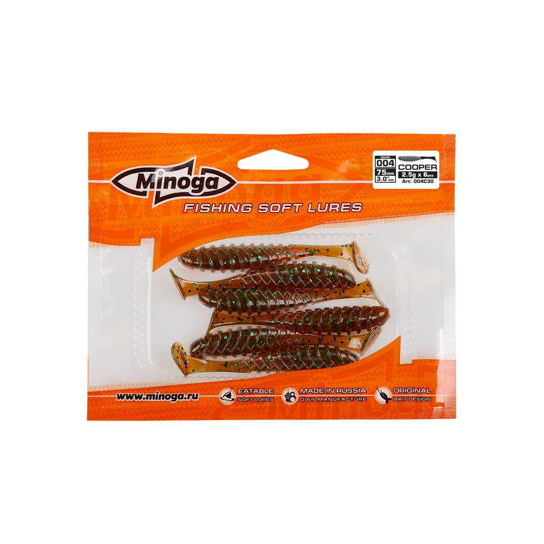 Виброхвост Minoga COOPER имеет удлиненное ребристое треугольное тело, которое создает шумы в водной среде, заставляя тем самым, обратить на себя внимание любому, даже самого пассивному хищнику. Отлично монтируется на офсетный, двойной или одинарный крючок. Приманка работает даже при самой медленной проводке! Cooper делается, как и все приманки MINOGA из мягкого съедобного силикона, с содержанием как вкусовой, так и ароматической добавки. Основным объектом ловли на данную приманку является окунь, судак и щука.