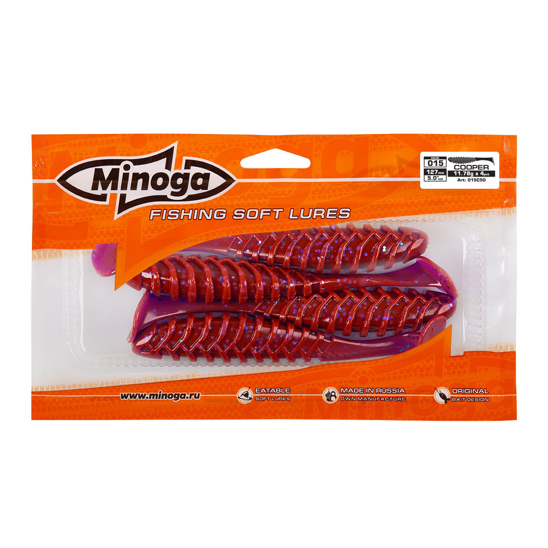 Виброхвост Minoga COOPER имеет удлиненное ребристое треугольное тело, которое создает шумы в водной среде, заставляя тем самым, обратить на себя внимание любому, даже самого пассивному хищнику. Отлично монтируется на офсетный, двойной или одинарный крючок. Приманка работает даже при самой медленной проводке! Cooper делается, как и все приманки MINOGA из мягкого съедобного силикона, с содержанием как вкусовой, так и ароматической добавки. Основным объектом ловли на данную приманку является окунь, судак и щука.