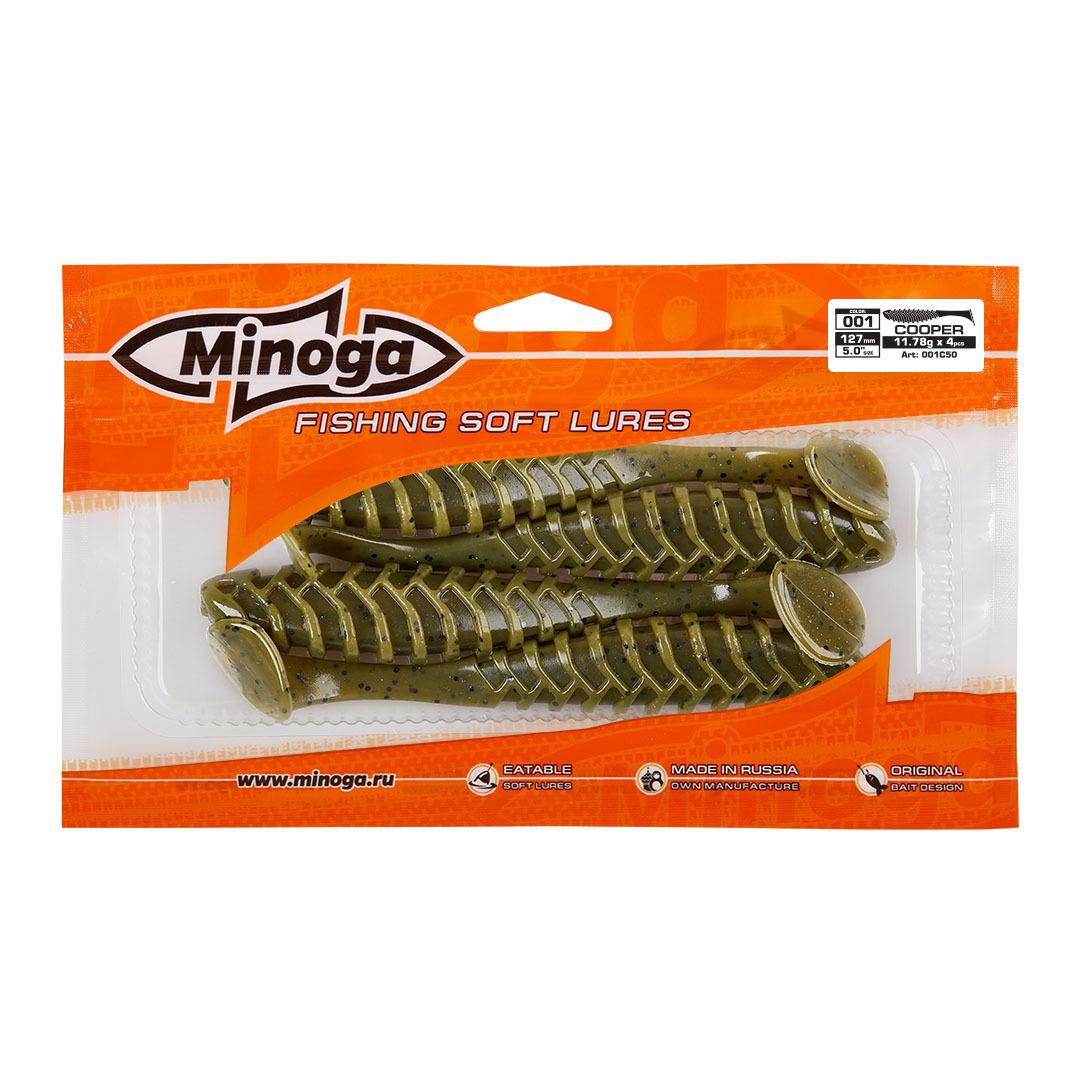 Виброхвост Minoga COOPER имеет удлиненное ребристое треугольное тело, которое создает шумы в водной среде, заставляя тем самым, обратить на себя внимание любому, даже самого пассивному хищнику. Отлично монтируется на офсетный, двойной или одинарный крючок. Приманка работает даже при самой медленной проводке! Cooper делается, как и все приманки MINOGA из мягкого съедобного силикона, с содержанием как вкусовой, так и ароматической добавки. Основным объектом ловли на данную приманку является окунь, судак и щука.