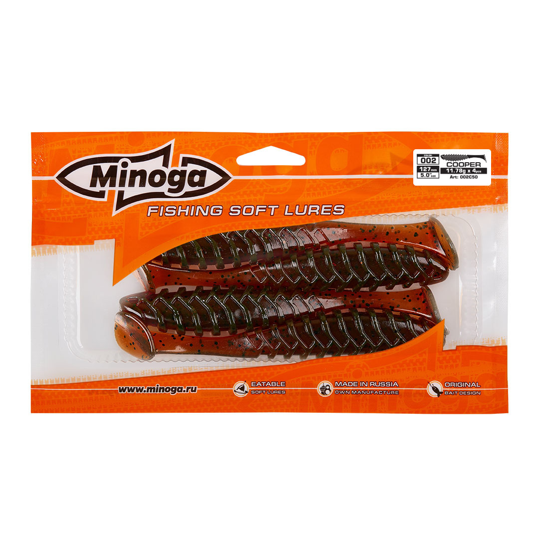 Виброхвост Minoga COOPER имеет удлиненное ребристое треугольное тело, которое создает шумы в водной среде, заставляя тем самым, обратить на себя внимание любому, даже самого пассивному хищнику. Отлично монтируется на офсетный, двойной или одинарный крючок. Приманка работает даже при самой медленной проводке! Cooper делается, как и все приманки MINOGA из мягкого съедобного силикона, с содержанием как вкусовой, так и ароматической добавки. Основным объектом ловли на данную приманку является окунь, судак и щука.