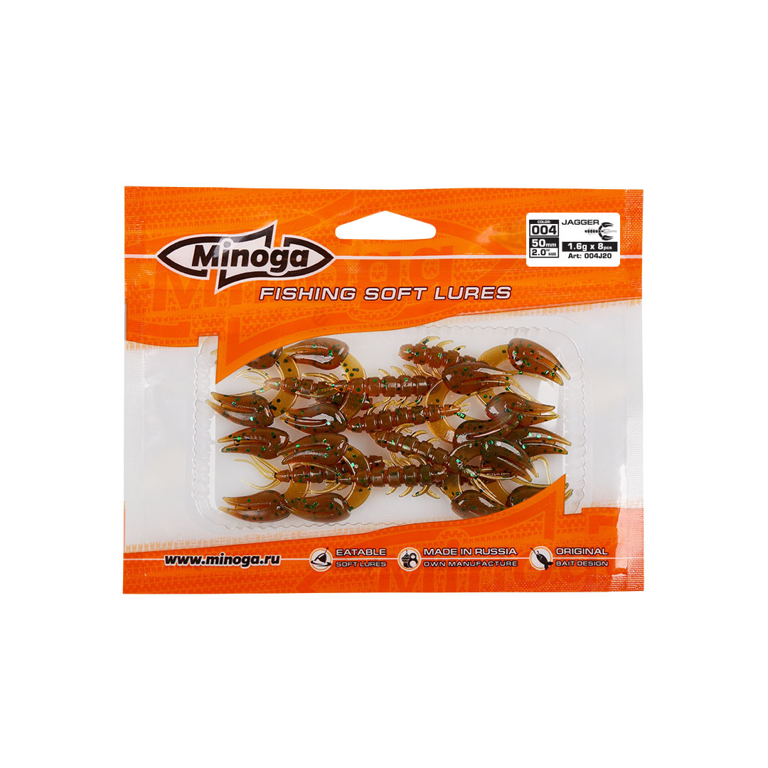 Рак Minoga Jagger имеет свою оригинальную игру клешнями, он заставит обратить на себя внимание любого, даже самого пассивного хищника. Приманка работает даже при самой медленной проводке! jagger делается, как и все приманки MINOGA из мягкого съедобного силикона, с содержанием как вкусовой, так и ароматической добавки. Основным объектом ловли на данную приманку является окунь, судак, сом и не редко щука