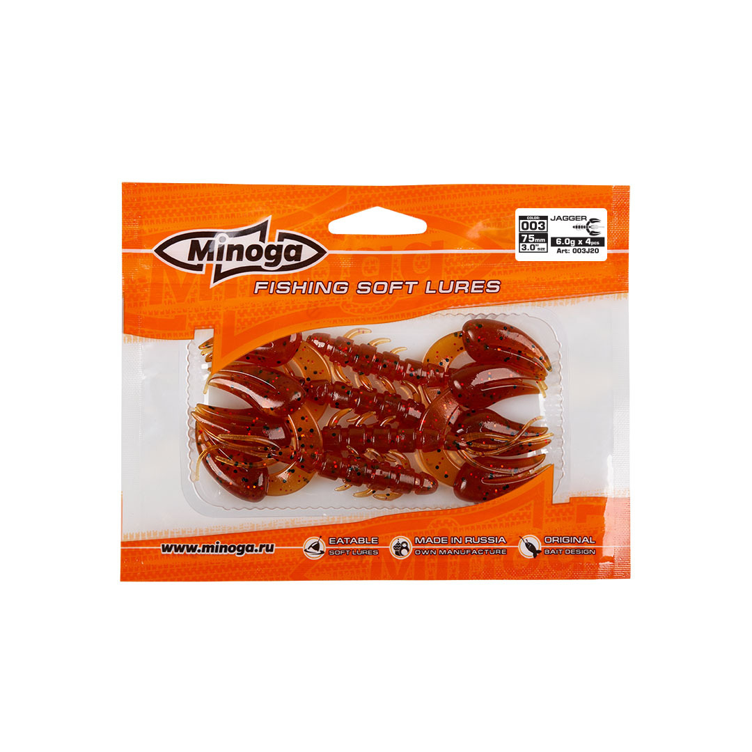 Рак Minoga Jagger имеет свою оригинальную игру клешнями, он заставит обратить на себя внимание любого, даже самого пассивного хищника. Приманка работает даже при самой медленной проводке! jagger делается, как и все приманки MINOGA из мягкого съедобного силикона, с содержанием как вкусовой, так и ароматической добавки. Основным объектом ловли на данную приманку является окунь, судак, сом и не редко щука