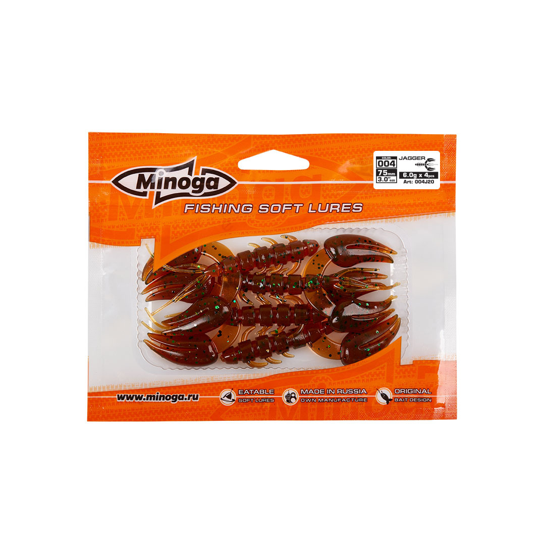 Рак Minoga Jagger имеет свою оригинальную игру клешнями, он заставит обратить на себя внимание любого, даже самого пассивного хищника. Приманка работает даже при самой медленной проводке! jagger делается, как и все приманки MINOGA из мягкого съедобного силикона, с содержанием как вкусовой, так и ароматической добавки. Основным объектом ловли на данную приманку является окунь, судак, сом и не редко щука