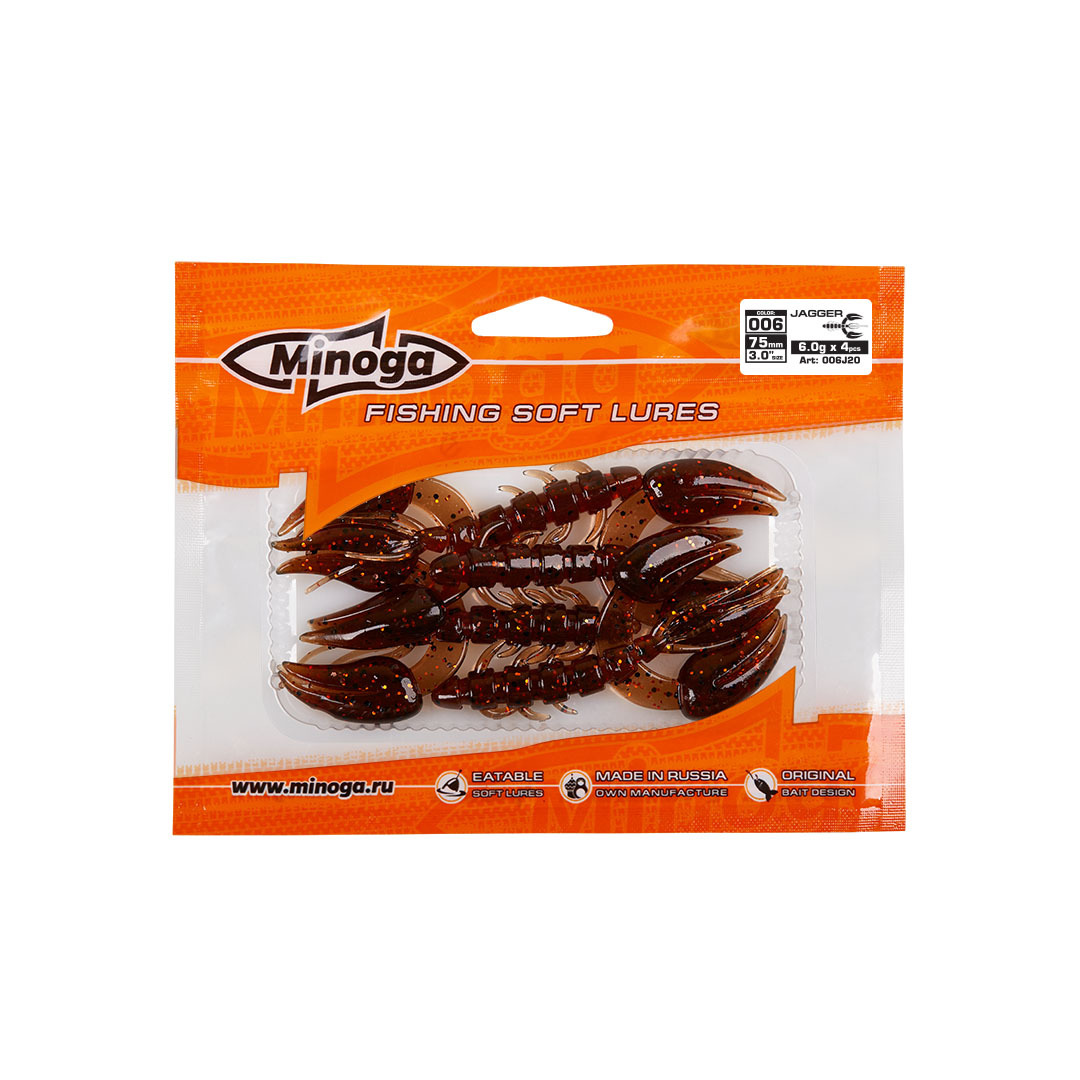 Рак Minoga Jagger имеет свою оригинальную игру клешнями, он заставит обратить на себя внимание любого, даже самого пассивного хищника. Приманка работает даже при самой медленной проводке! jagger делается, как и все приманки MINOGA из мягкого съедобного силикона, с содержанием как вкусовой, так и ароматической добавки. Основным объектом ловли на данную приманку является окунь, судак, сом и не редко щука