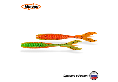 Слаг Minoga PULSAR имеет тело довольно объемное, ребристое плавно переходит в гибкий и крайне подвижный хвост, заставляя тем самым, обратить на себя внимание любого, даже самого пассивному хищника! Pulsar делается, как и все приманки MINOGA из мягкого съедобного силикона, с содержанием как вкусовой, так и ароматической добавки. Основным объектом ловли на данную приманку является окунь, судак и щука.